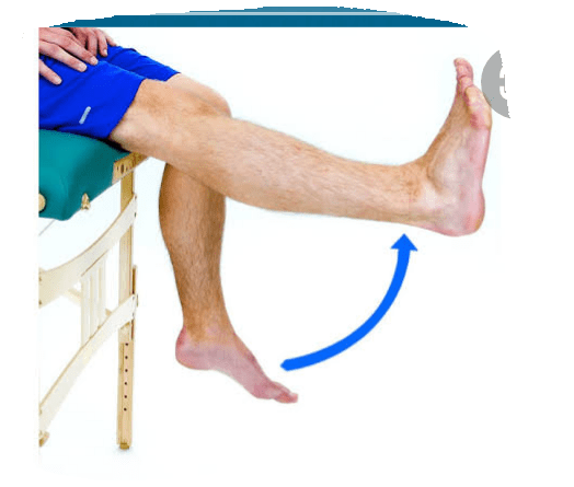 7) Dynamic quadriceps: Sit on the table or a chair with legs shouldn’t be touching the floor and in the position straighten the knee